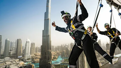 High-end safety is central to this exhilarating activity. Besides an enlightening demo session, a specialist team will guide you throughout this airborne adventure. As you will be attached to the most innovative safety harnesses, this allows you to navigate the edge, immerse yourself in Dubai’s breathtaking grandeur, and catch all the iconic panoramas with absolute peace of mind.