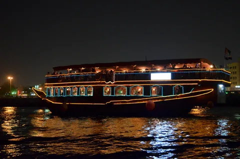 Treat yourself to an atmospheric evening in Dubai aboard a traditional wooden dhow, which was once mainly used for fishing and pearl farming before the discovery of oil in the region. After a warm welcome and refreshing drink, head to the dhow’s lower deck or ascend the upper deck that is partly open for unhindered views. Rest assured of a memorable Marina Sunset Cruise Dubai as the sun gradually begins to descend, smearing the skyline in gold, purple, and crimson hues.
