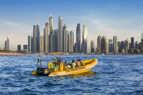 Experience a 60-minute Dubai Marina Tour with Yellow Boats, cruising along the skyline, iconic skyscrapers, and scenic waterfront views.